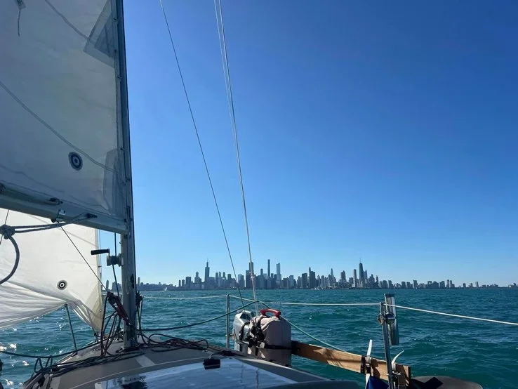 Between our usual workload and the constant calorie consumption, we had neglected an important task. To get past Chicago, we would need to clear a 19 foot bridge. Once again our mast had to come down. We still hadn’t found the right place to do the job. A call to the most popular option made us gasp - they wanted $550, more than double the rate we were used to. On the way down the lake we had met Malte, a sailor and young father from Chicago. We called him for advice. Malte not only connected us with his local yacht club to unstep the mast for just $150, he also brought lumber and tools and helped us build a mast crutch on deck. When we offered to pay him for his help he sternly refused. Often we are helped on this adventure by caring people like Malte. It inspires us to be that person for others we have yet to meet.