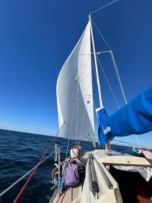 Finally we reached another milestone on the Loop. St. Joseph, MI was where we had purchased Novella almost two years prior. We won the eBay auction for just $3,200 and the seller had tried to back out of the deal. The unpleasantness that followed was quickly erased the moment we were left alone with Novella. It was surreal thinking back to that time. Our excitement was through the roof. We knew why we were buying this boat, but not one other person in our lives knew our plans. Our first night we spent sleeping on Novella was filled with wonder. This could really be our home. But in 2022 we were terrified to exit the jetty onto Lake Michigan. That’s why we had found Chris. A tried old sailor who had spent time sailing the Pacific back in the 70’s, we had asked him to accompany us on our maiden voyage. He was amazed at Novella’s condition and donated his afternoon to teach us the ropes of our new boat. We wanted to find him while we were back in town and surprise him with news of the reckless adventure he had partly and unknowingly enabled. Unfortunately our texts had long been auto-erased. We surveilled the Facebook page of his local club of which we knew he was a member. No luck. Diving deeper, we found a photo of him. It was not of use by itself, but we recognized his friend who had “liked” it. His friend is a public official, so we contacted his office and left a message for him. Days later, he texted us Chris’s contact info. We left a message but heard nothing back. We left another message with the bartender at his club. Nothing. At risk of being stalkers, we decided the universe didn’t want us to reconnect. Out on Lake Michigan, thunderstorms and waterspouts were in the forecast, keeping us in port for days. To our surprise, one day the phone lit up with his name. “Sorry about that. I’m not good with checking voicemail.” It was the message left at the bar that finally found him. We met for dinner and explained how thankful we were for his lesson two years prior and exchanged stories of our sailing adventures.