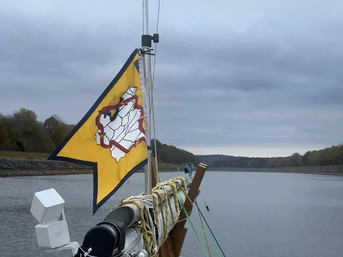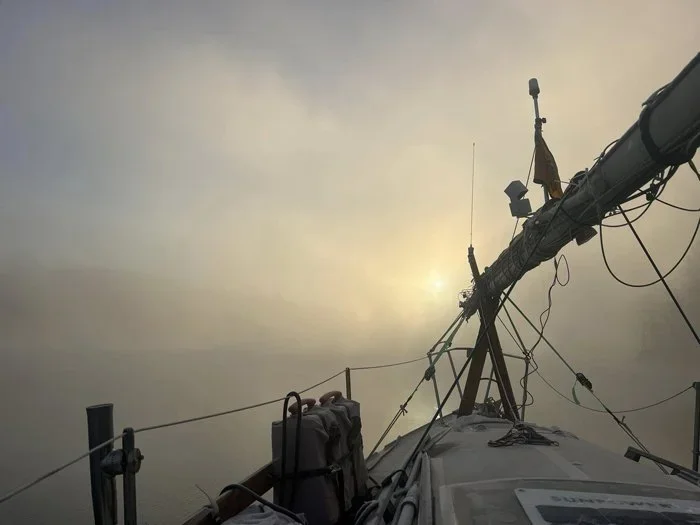 Day 5 • believe it or not but we are still cold - so cold that our hatch was frozen shut this morning, passed by the White Cliffs of Epes again, got surprised by a tow that snuck up behind us