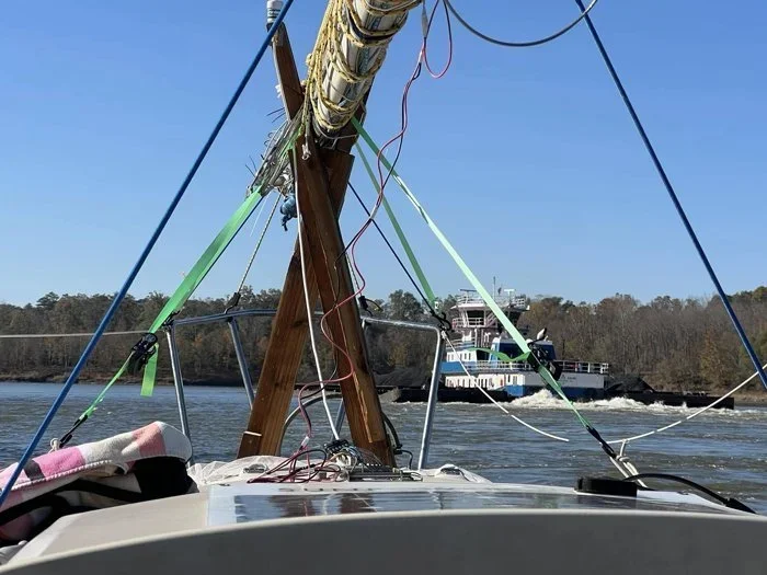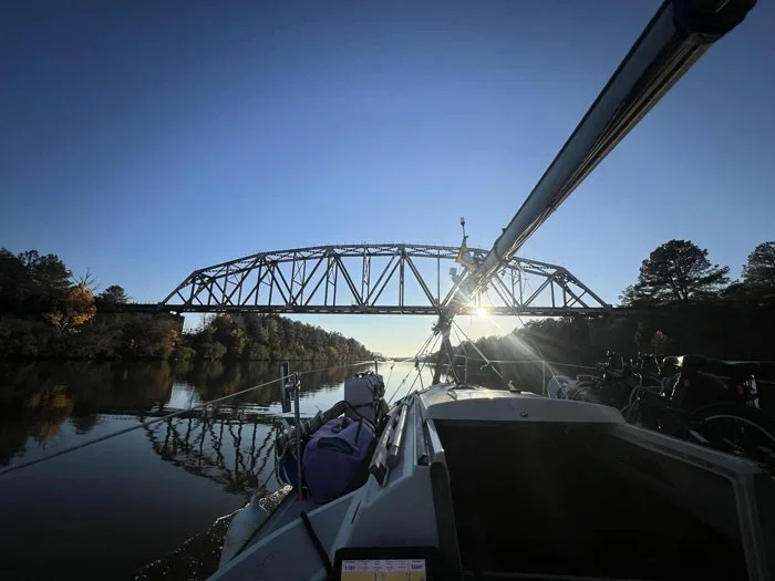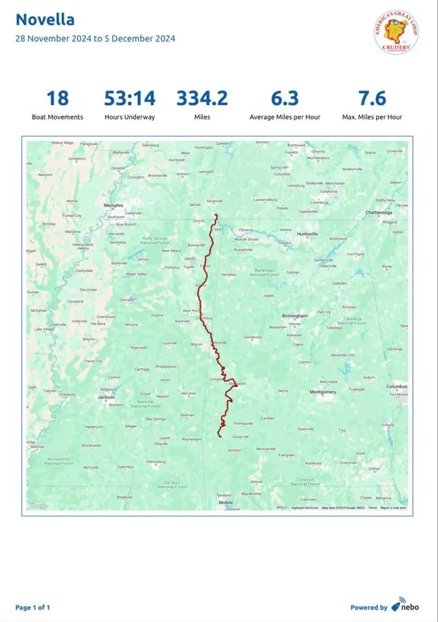 After spending a week visiting family then a full service of our outboard, we set off this morning at 6:30am toward the Tombigbee Waterway. It’s a repeat of the beginning of our Loop - cold and getting colder! This time we are armed with more appropriate gear and way more experience. Our goal is to “rush” to Panama City where we will stay to complete some boat projects.